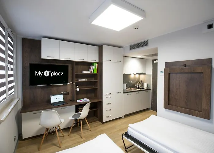 Aparthotel My 1St Place Poznan se trouve dans le voisinage de "Grunwald" à Poznań, à proximité de lieux de divertissement comme le grand théâtre de Poznań, à environ 2 km. L'hôtel propose un parking privé pour 15 PLN par jour sur place.